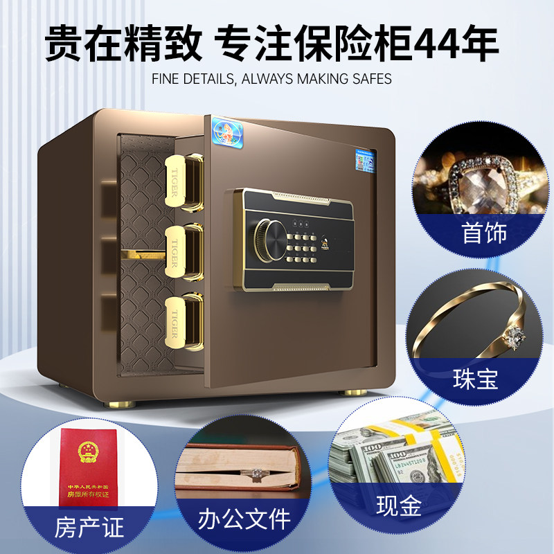 虎牌保险柜小型家用保险箱25cm35迷你智能指纹密码2025新款入衣柜床头柜首饰盒全钢防盗办公室文件夹万保管箱