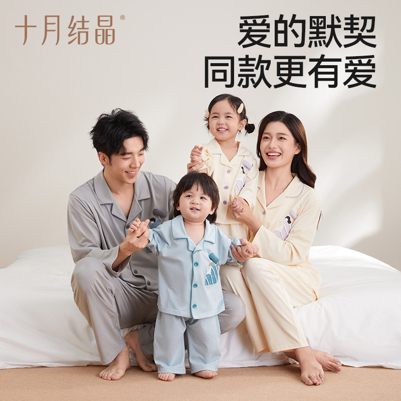 十月结晶纯棉家居服套装长袖冬季款女简约休闲男亲子服装情侣睡衣