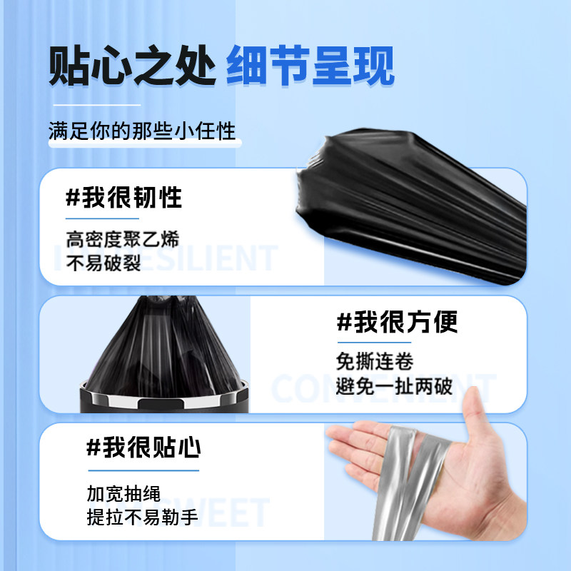免撕加厚30%垃圾袋特厚大号手提式家用办公厨房自收口特厚垃圾袋