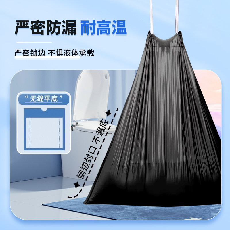 手提式抽绳垃圾袋家用加厚实惠批发装厨房黑色大号垃圾袋