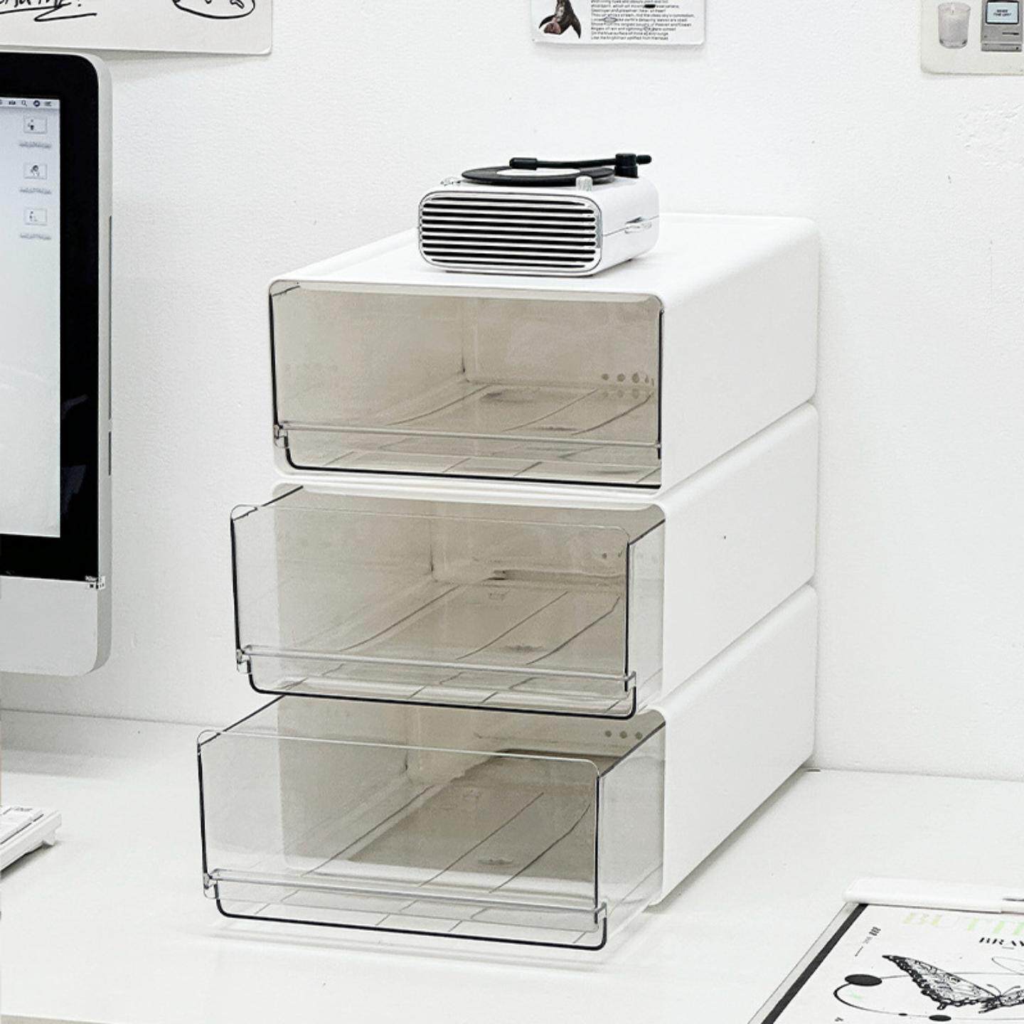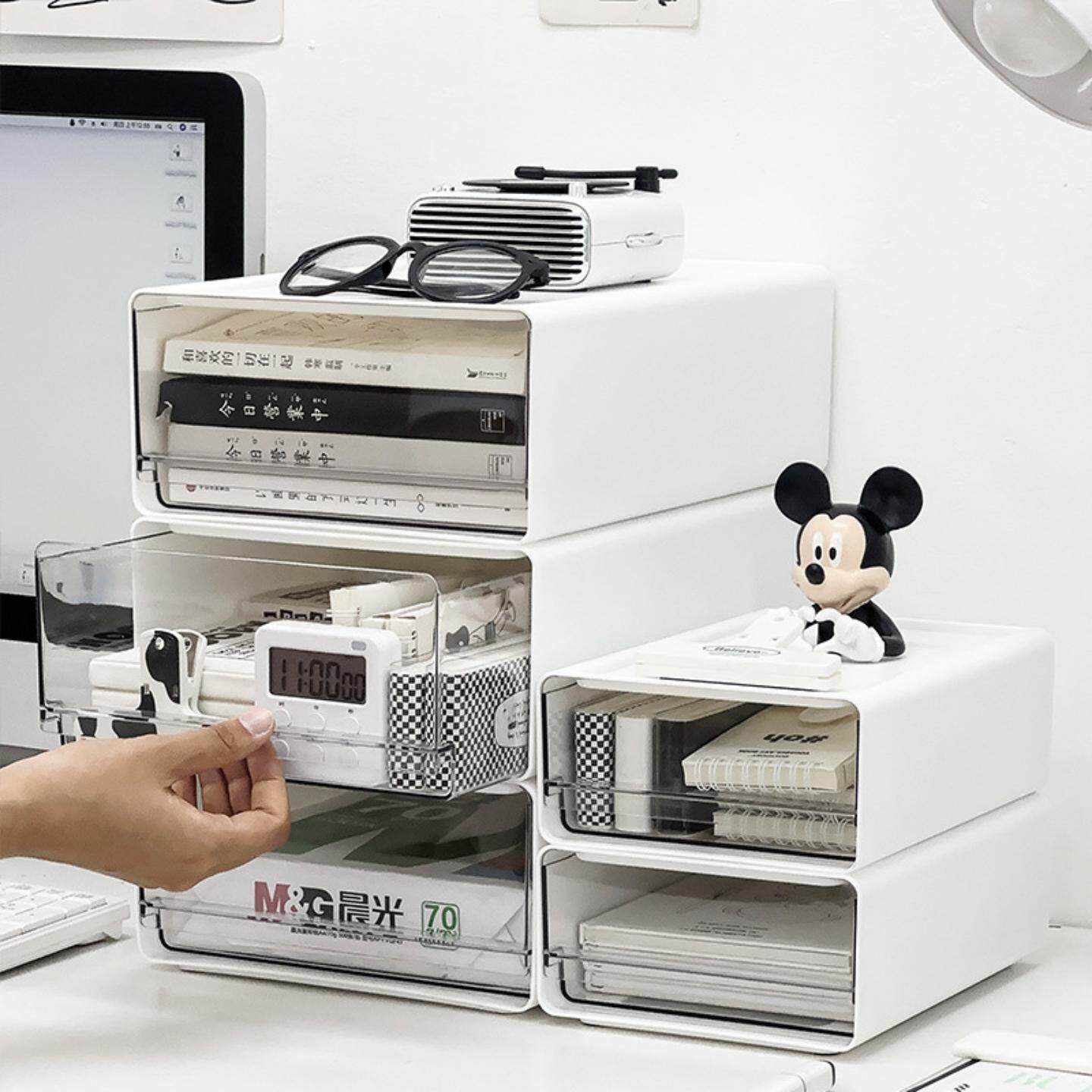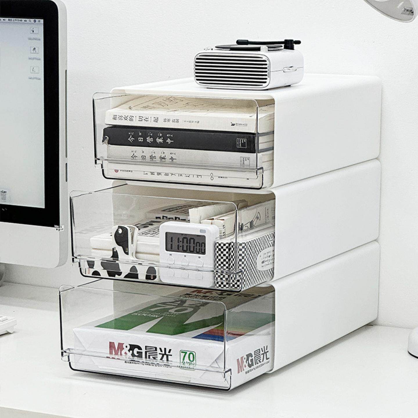 办公室桌面文件收纳盒透明抽屉式工位整理柜储物盒可叠加收纳柜桌面文件柜