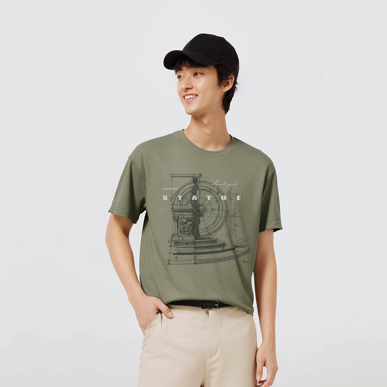 HM男装女装T恤春季透气圆领户外出游运动短袖内搭简约上衣0685816