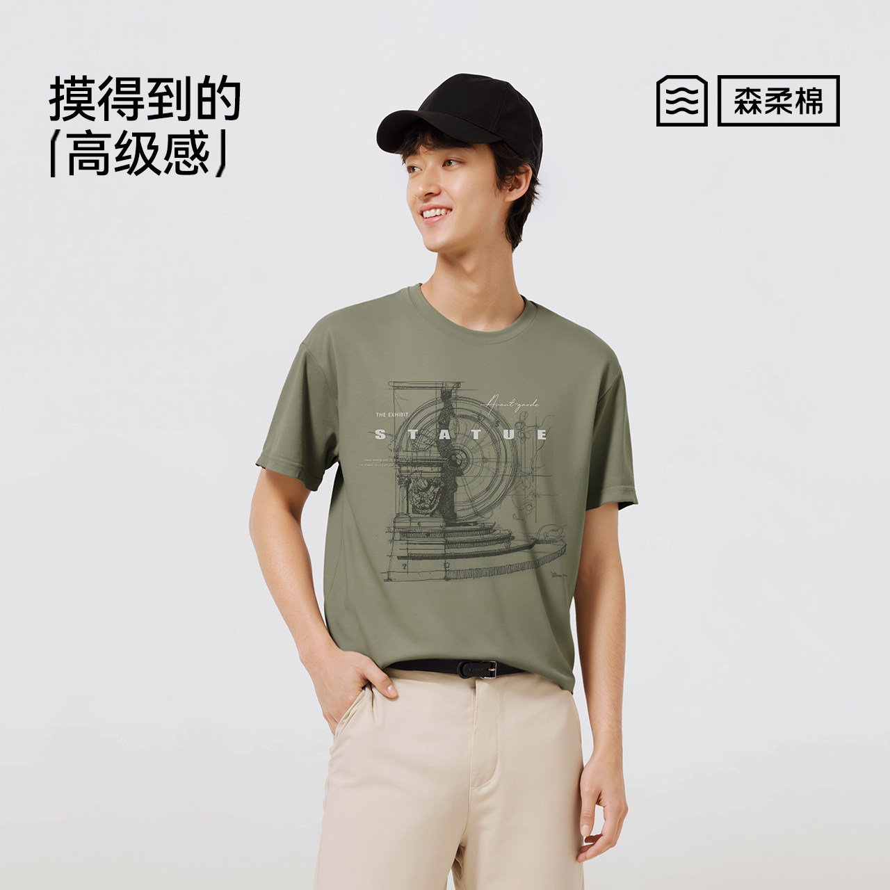 森柔|森马短袖T恤男夏美式复古印花针织衫小宽松圆领上衣时尚休闲