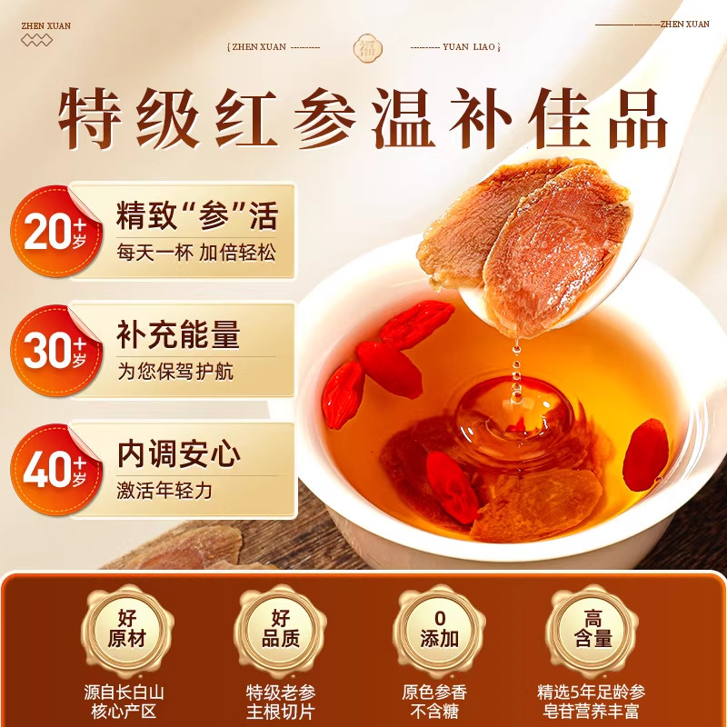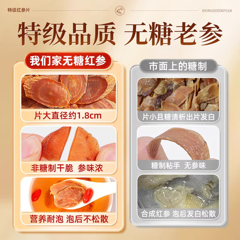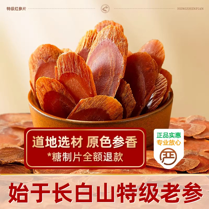 特级无糖红参片官方旗舰店正品吉林长白山人参即食泡水喝中药材