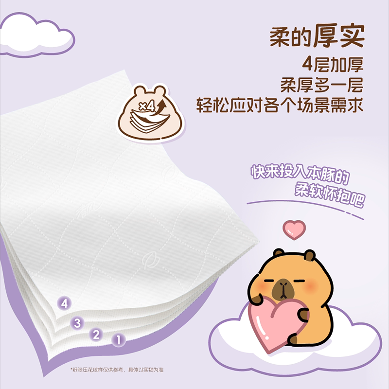 清风抽纸M码棉柔卡皮巴拉4层360张大包加厚纸巾餐巾纸抽面巾纸by