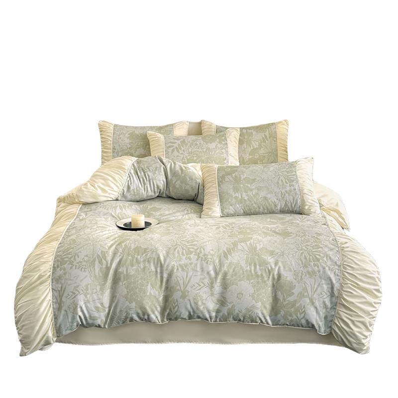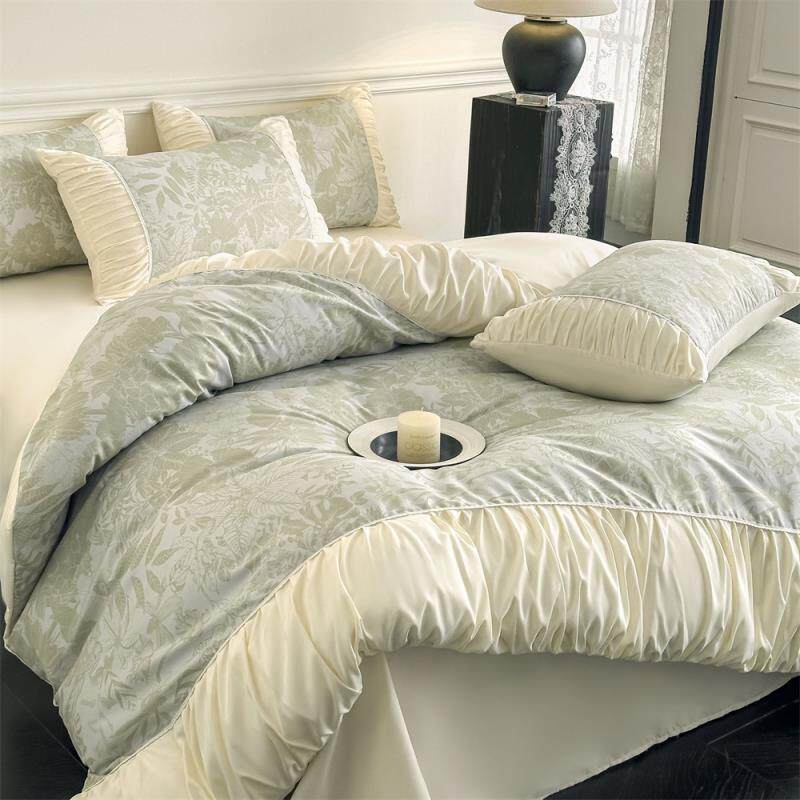 秋冬褶皱花边床上四件套公主风水洗棉被套床裙款床单人三件套床笠