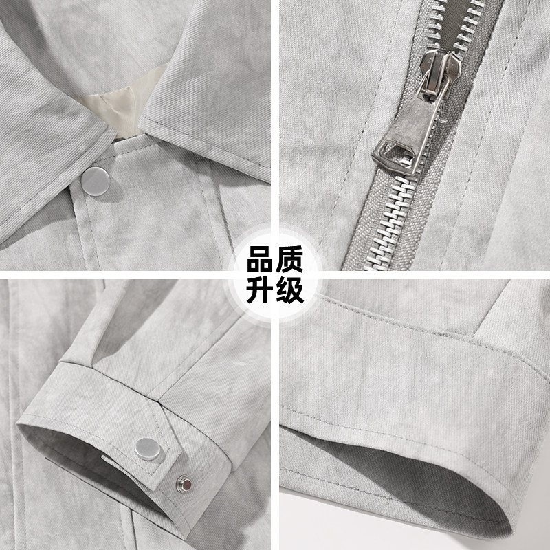 查尔斯桃心 美式扎染宠物印花翻领夹克春秋季情侣款百搭休闲外套