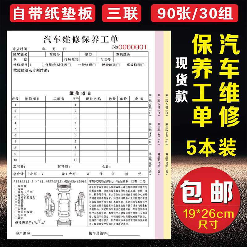 修理厂接车工单汽修店施工修车报价服务保养结算单据汽车维修清单