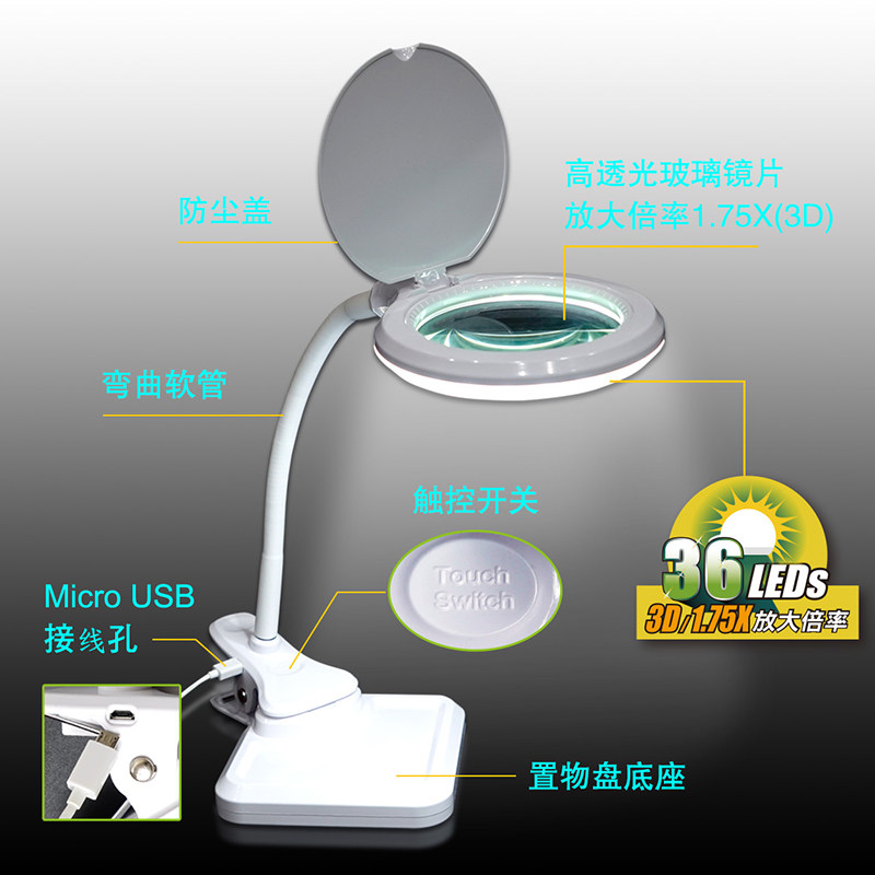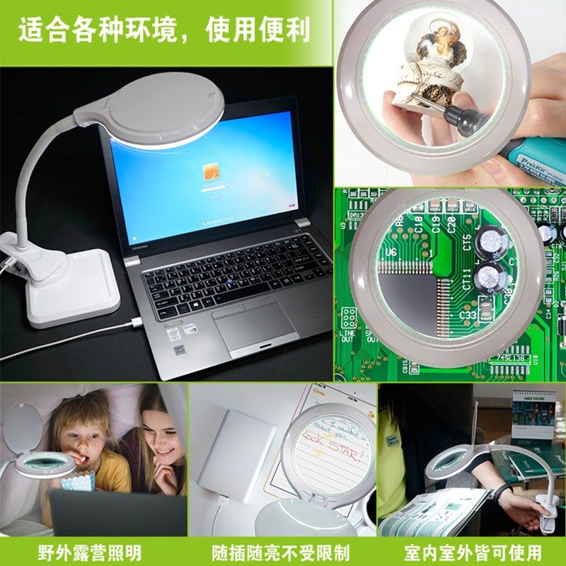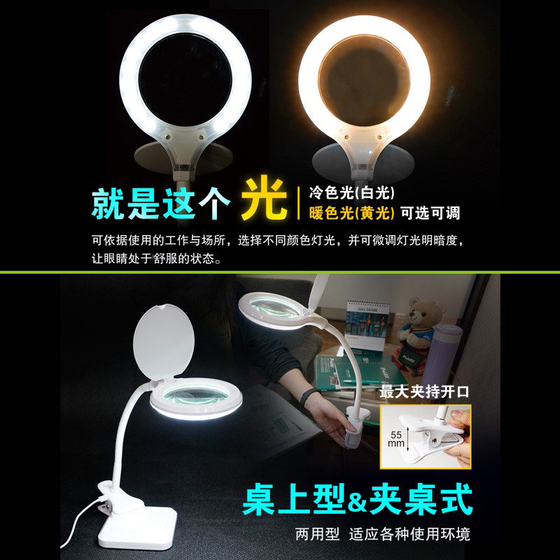 宝工MA-1010U夹式台式放大镜带灯维修焊接手机电路板主板台灯高清老人阅读看书led灯雕刻手工扩大镜珠宝鉴定