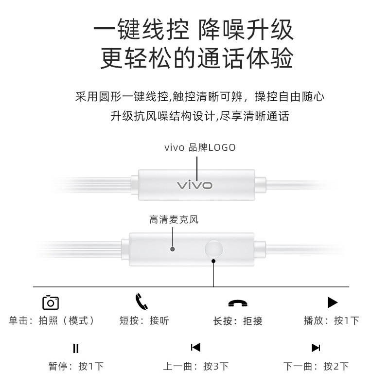 vivo原装XE100耳机X7X9X20X21X27通用有线耳机u3S5Z5z1z3安卓耳机