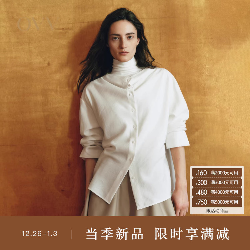 OVV2025秋冬新款女装优雅荡领简约版型通勤长袖休闲衬衫