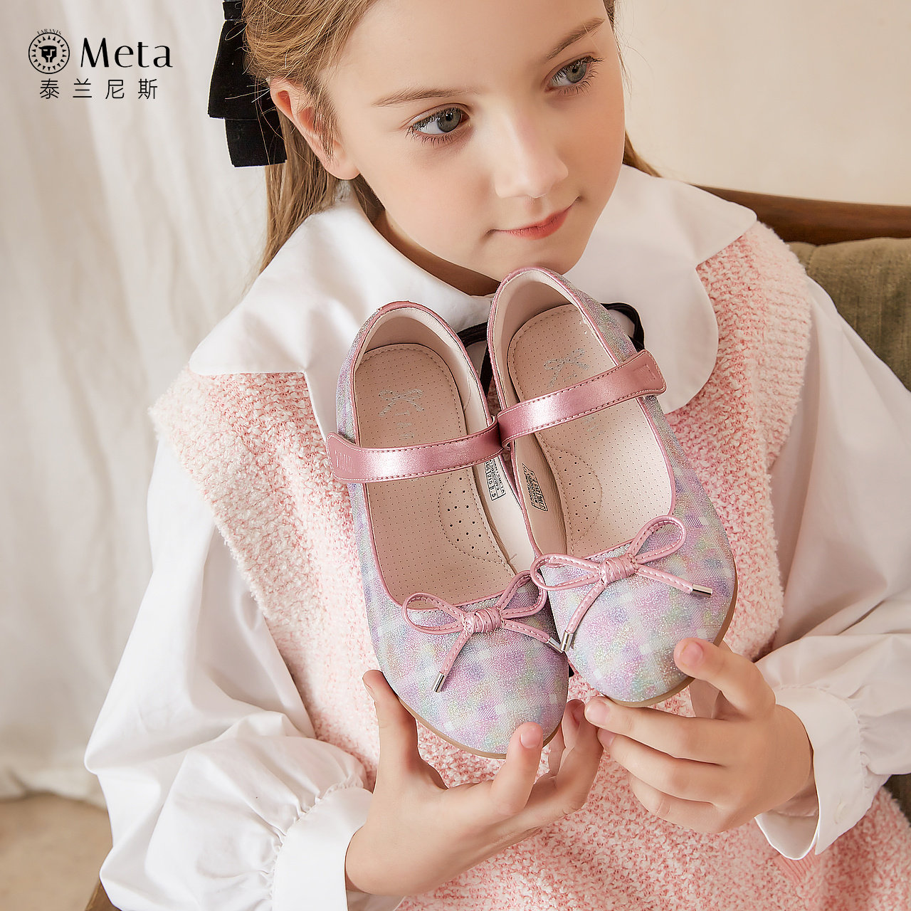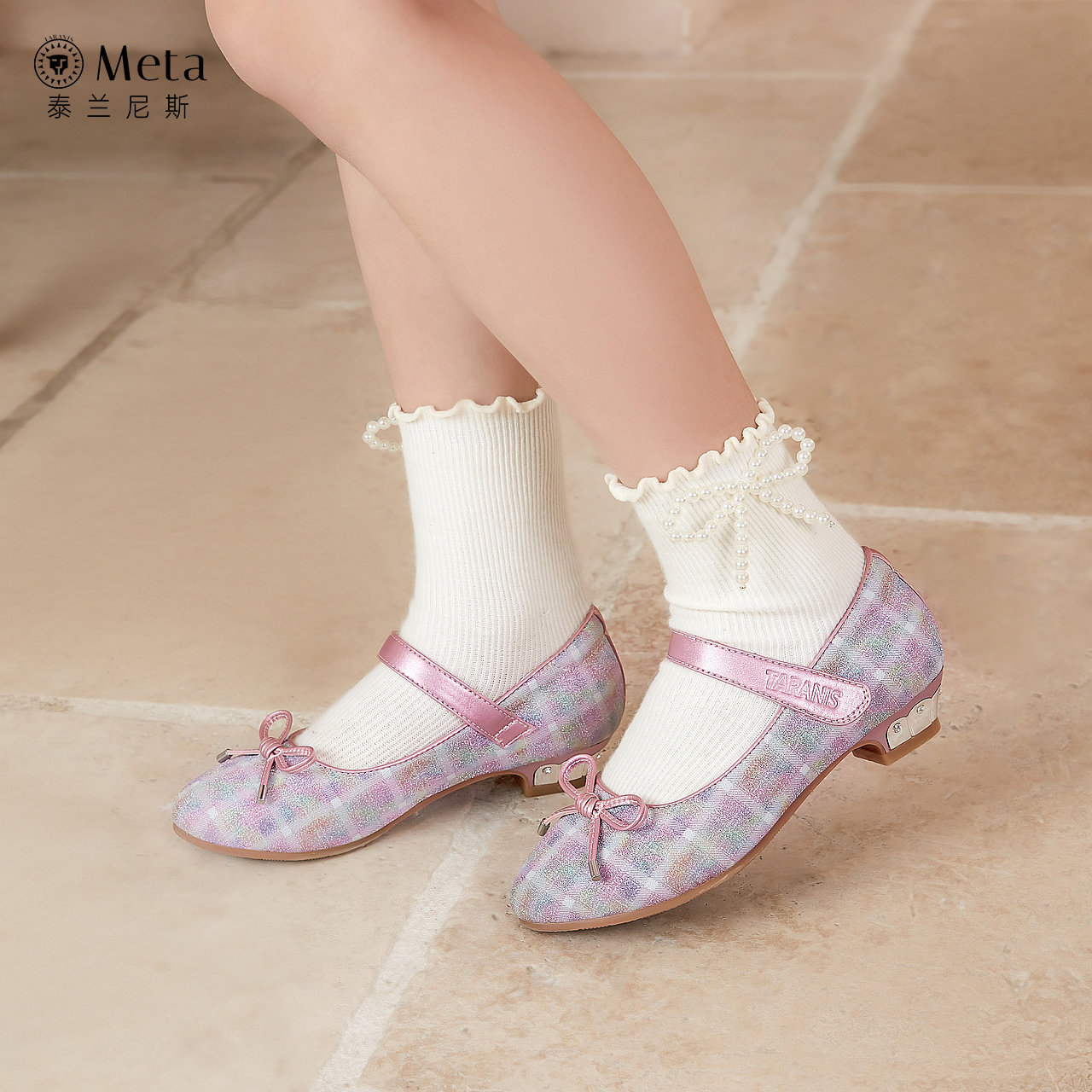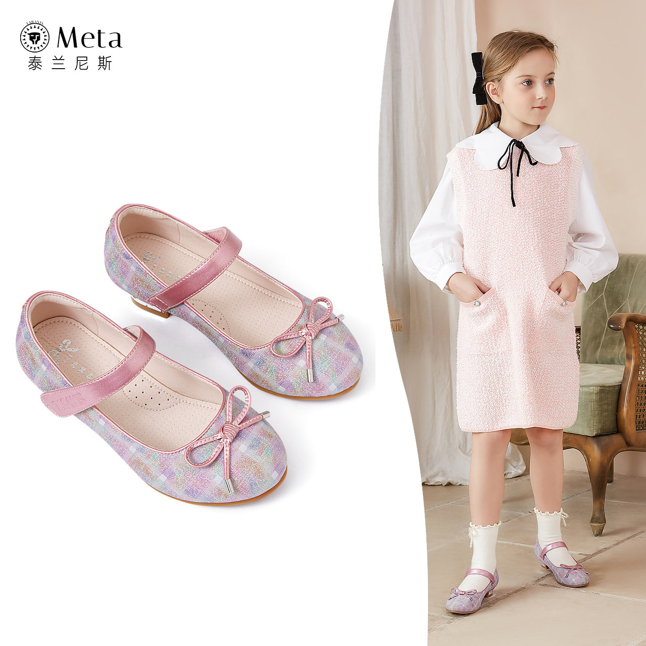 泰兰尼斯meta女童水晶鞋高跟公主皮鞋儿童鞋秋款中大童软底闪亮鞋