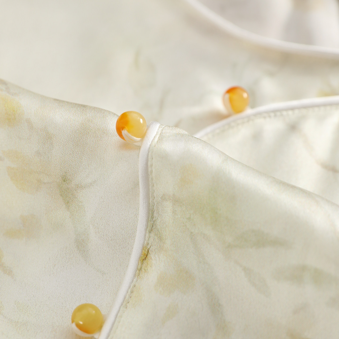 美标6A级真丝睡衣套装女夏100%桑蚕丝新中式中国风丝绸凉感家居服