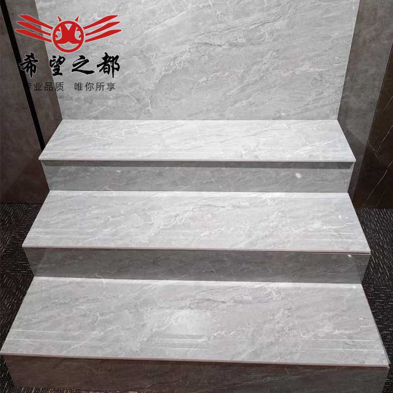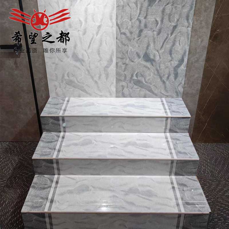 楼梯砖踏步瓷砖防滑大理石地砖 原厂拉槽通体砖台阶地板砖灰色