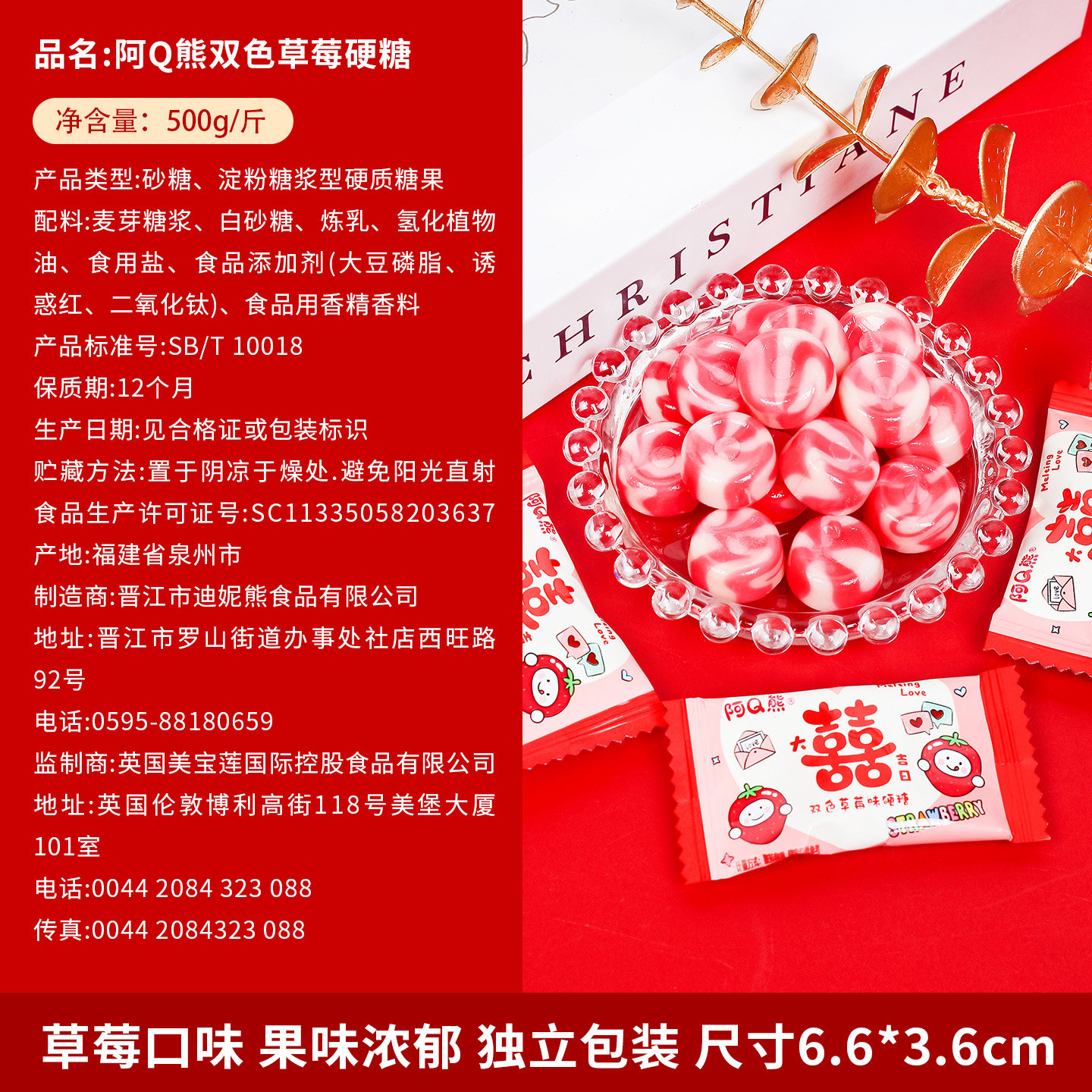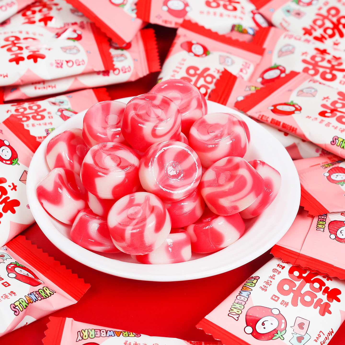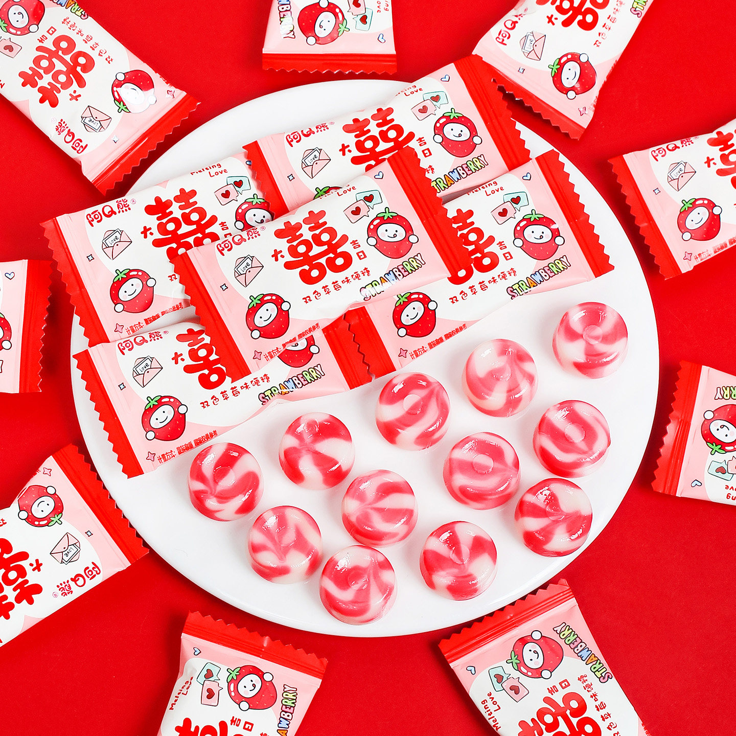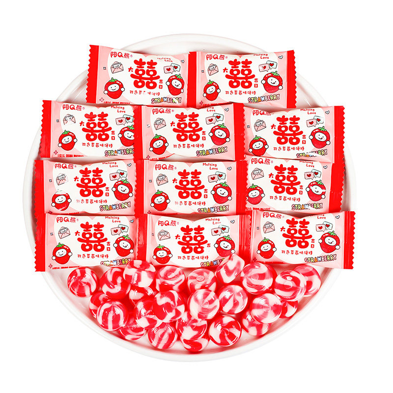 双色草莓味硬糖散装喜糖结婚专用婚礼订婚喜事糖果零食
