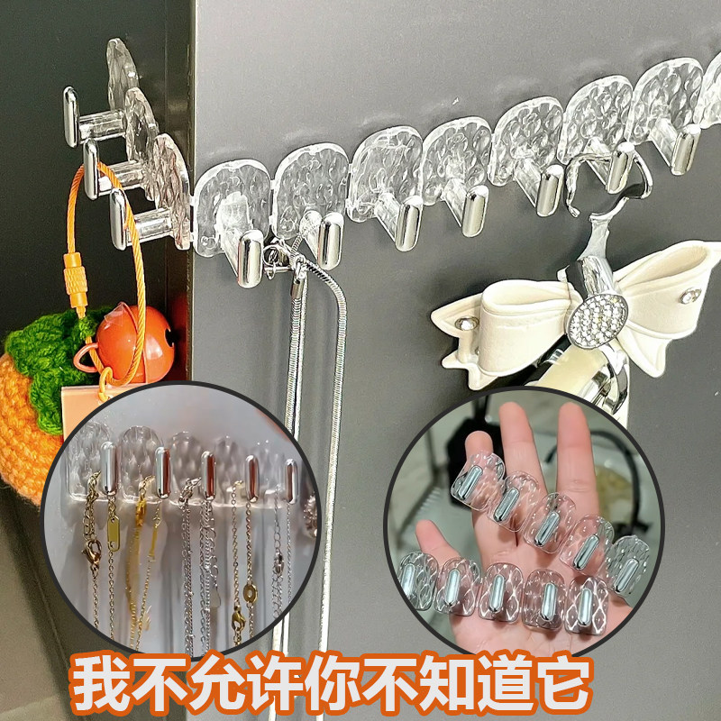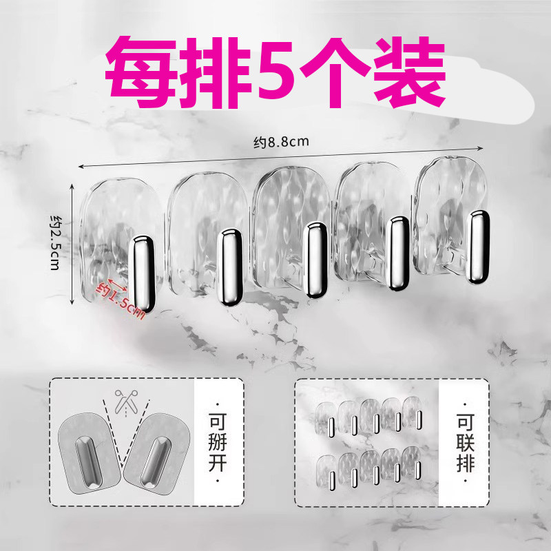 迷你无痕连排挂钩卫生间镜柜门后首饰粘贴壁挂小钩免打孔收纳承重