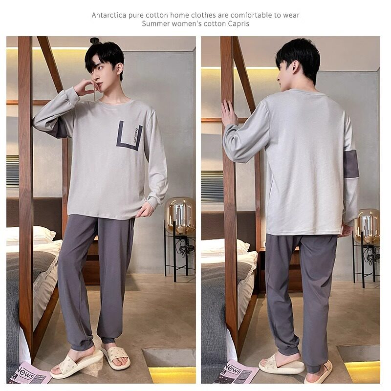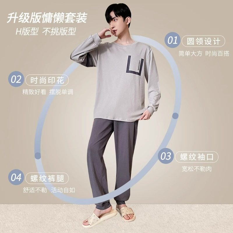 睡衣男款春秋季薄款家居服套装男士长袖长裤大码休闲可外穿秋冬款