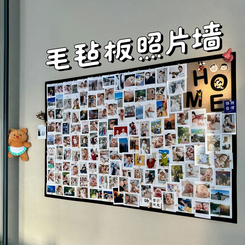毛毡板照片墙背景板免打孔软木板书桌墙面装饰拍立得相册展示墙便利贴留言板毛粘墙贴家庭文化墙愿景板粘贴板