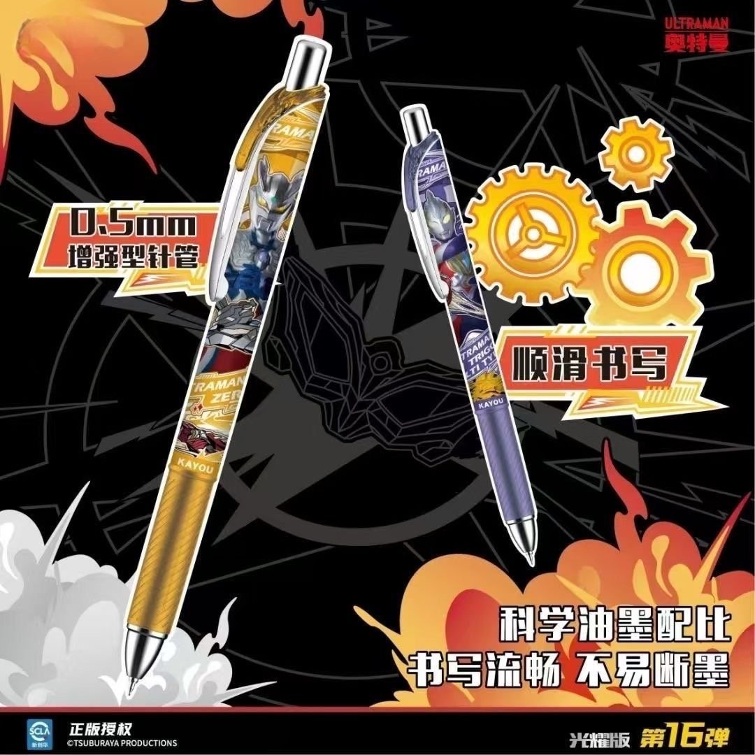 正版奥特曼光耀版第16弹九英雄笔记按动式中性笔按压盲盒小学收藏