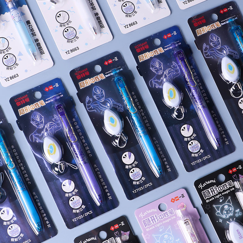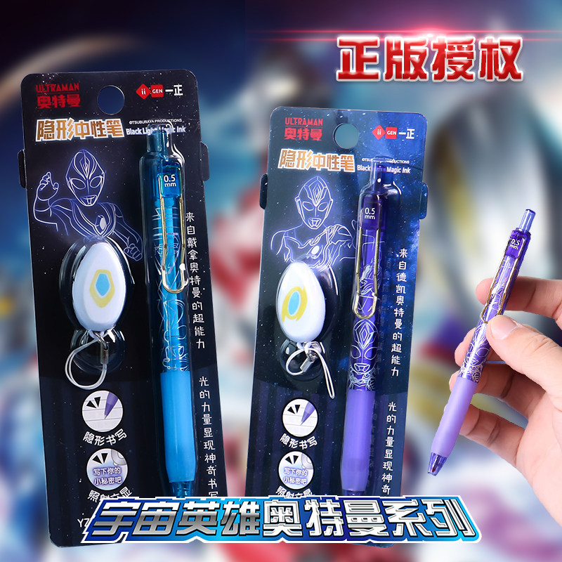 一正奥特曼英雄隐形按动中性笔秘密灯照笔荧光笔奥特曼隐形灯照笔