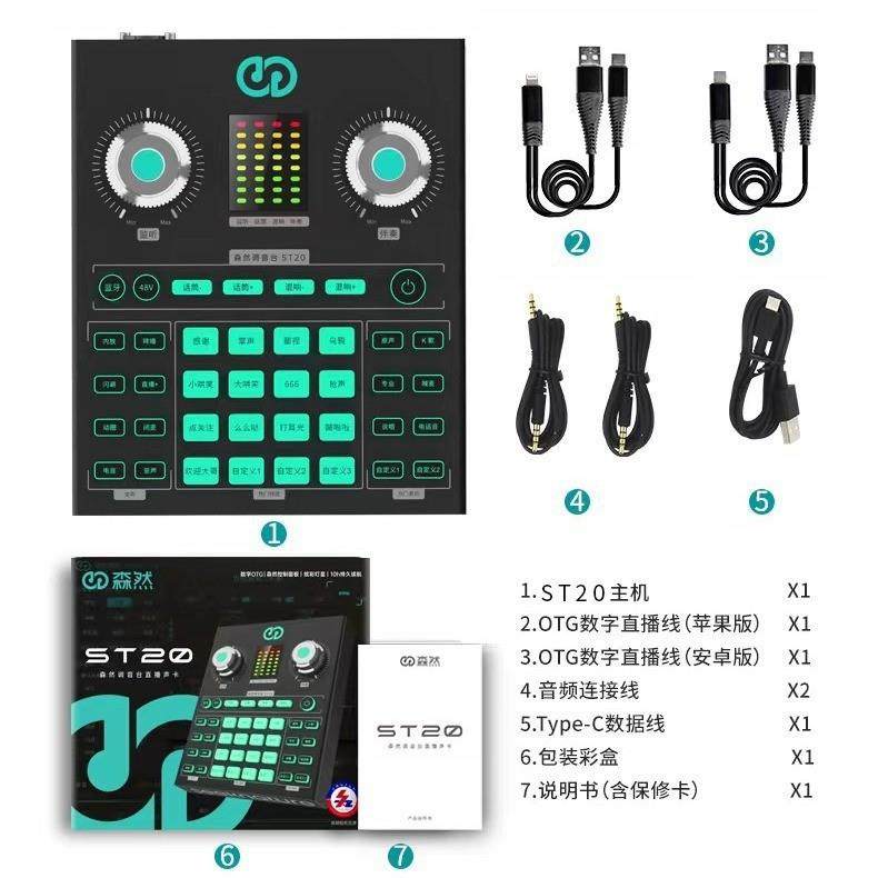 森然ST20直播声卡设备全套手机电脑通用麦克风K唱歌专用录音声卡