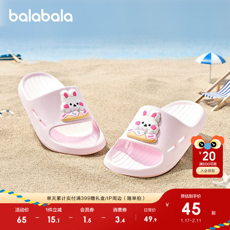 巴拉巴拉儿童拖鞋夏季2025新款居家男童女童舒适童鞋简约防滑卡通