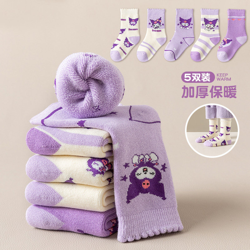 库洛米儿童袜子纯棉冬季加绒加厚毛圈袜男女童宝宝冬天保暖毛巾袜