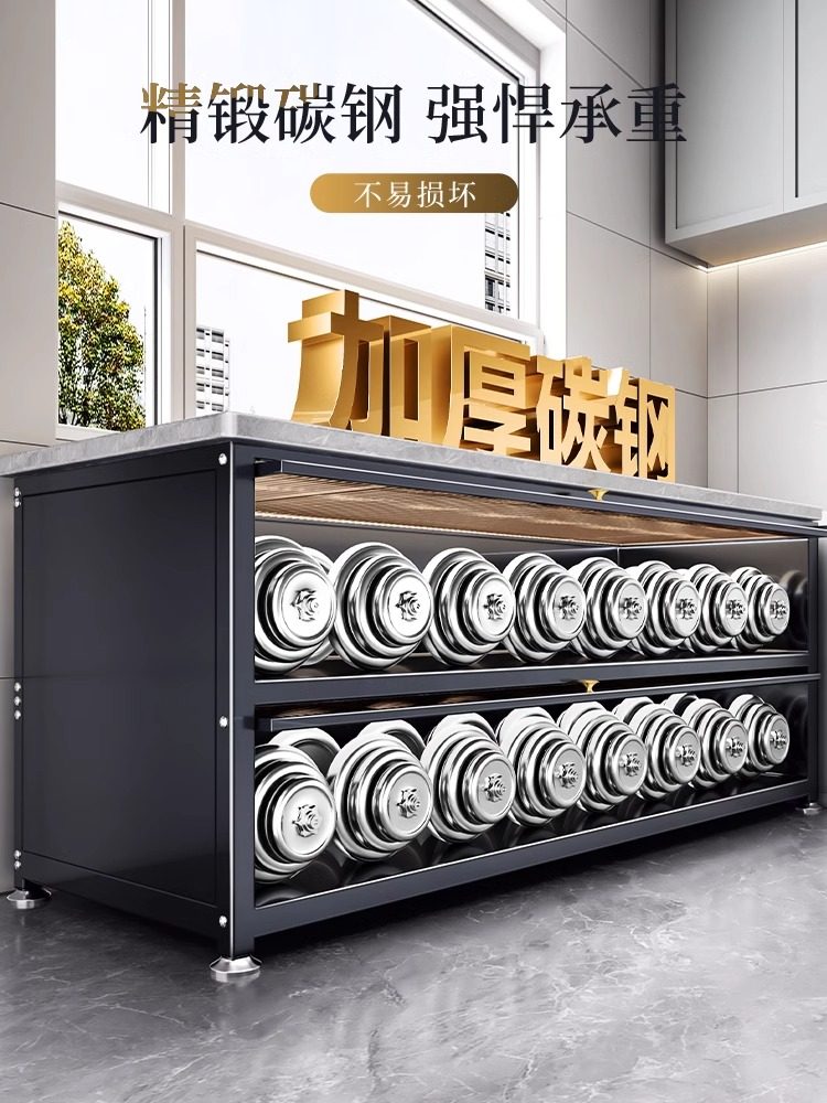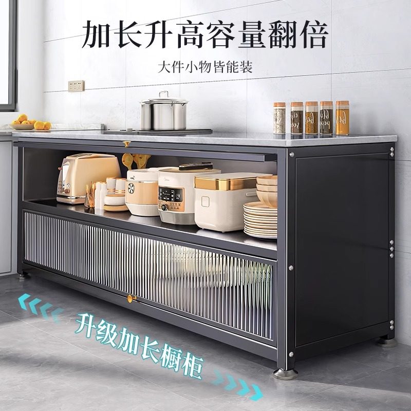 厨房置物架落地多层岩板收纳柜多功能微波炉切菜餐边碗储物柜碳钢