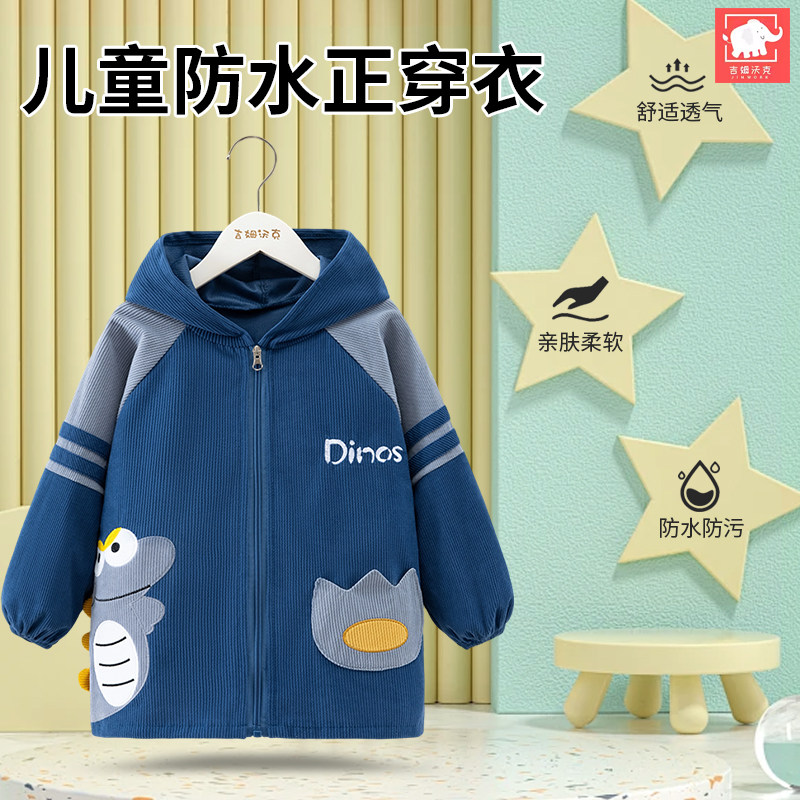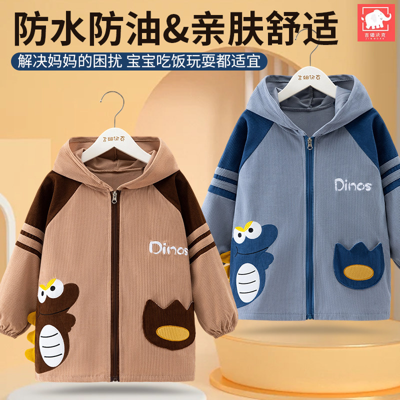 儿童罩衣秋冬外穿洋气中大童防脏外套灯芯绒护衣男孩拉链围裙防水