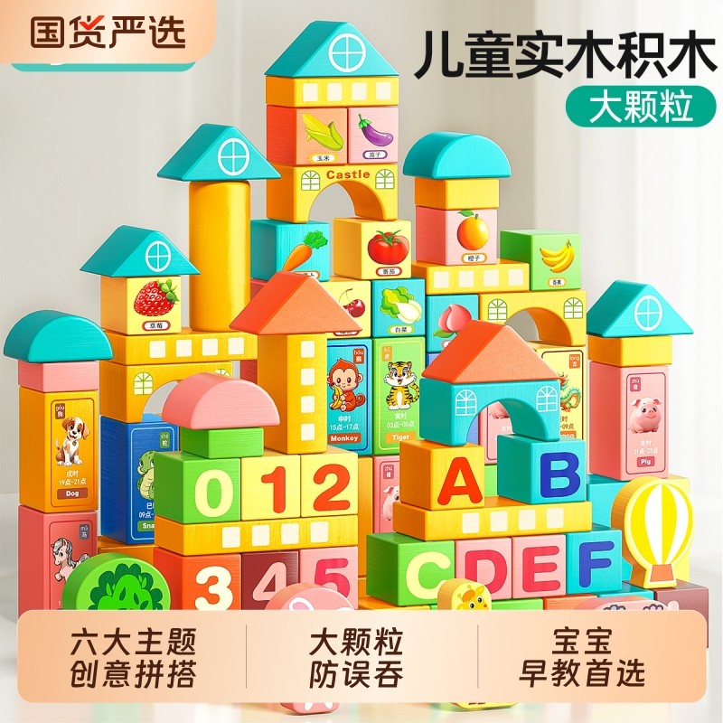 实木积木大颗粒开发智力动脑儿童早教启蒙拼装男孩3到6岁益智玩具