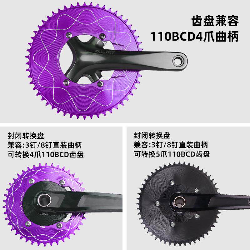 VXM公路车4爪110BCD正负齿链轮GXP3钉8钉气动功率计齿片封闭牙盘