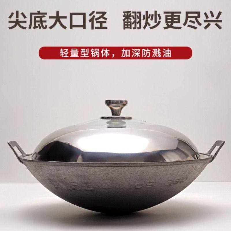章丘炒菜锅传统铁锅官方旗舰老式炒锅家用不粘锅无涂层燃气灶适用