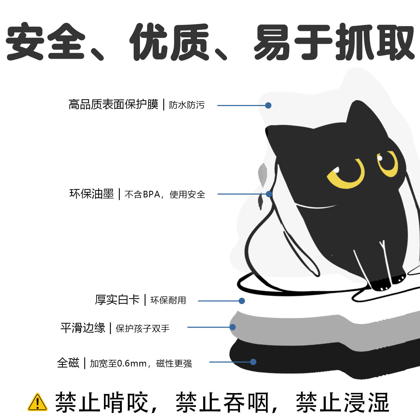 40张原创黑猫软磁冰箱贴高颜值可爱猫咪小动物卡通创意DIY装饰磁性墙贴黑板白板柜子入户门吸铁石防水磁力贴