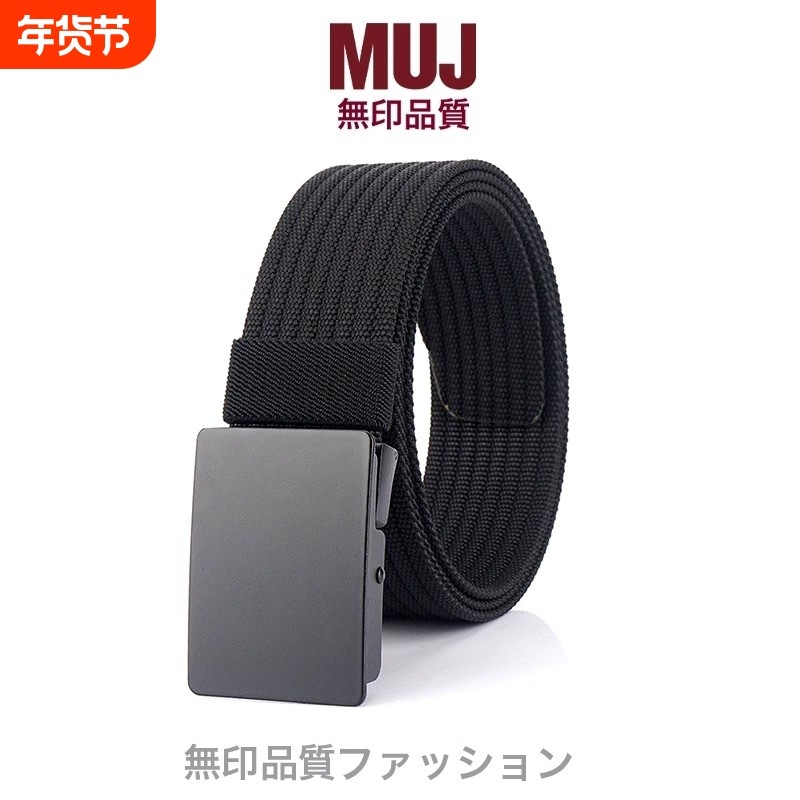 日本男士帆布腰带皮带平滑扣休闲百搭尼龙加厚无孔裤扣头学生合金