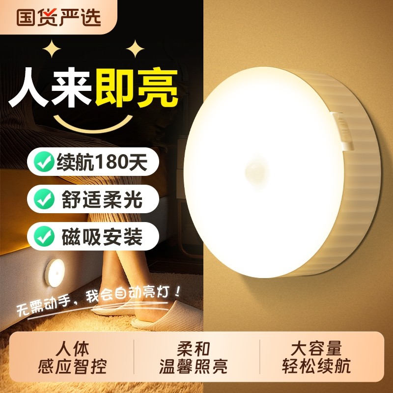 人体智能感应灯卧室床头起夜喂奶usb充电人来即亮厕所楼梯小夜灯