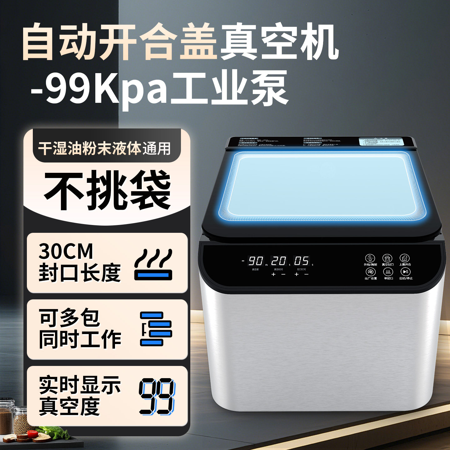 蓝莓商用全自动真空机食品塑料袋牛皮纸铝箔袋抽真空包装机米砖商用真空封口机打包机塑封机干湿通用工业大泵