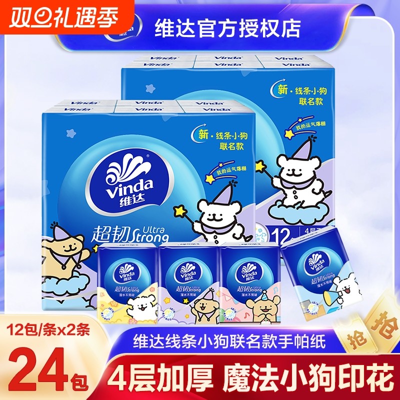 维达线条小狗联名款印花手帕纸随时便携装餐巾纸面巾纸