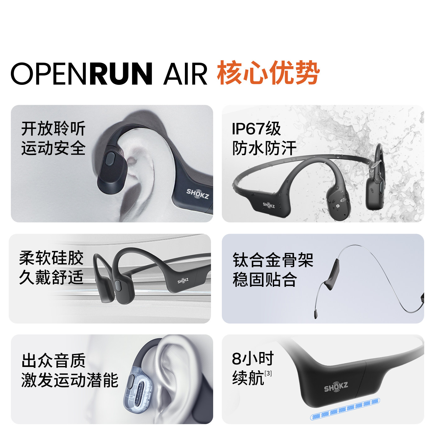 Shokz韶音OpenRun Air S803骨传导无线蓝牙耳机运动跑步骑行开放