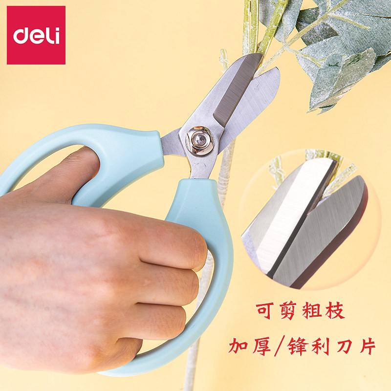 得力剪刀花艺剪园林剪修剪花木鲜花家用插花加厚宽头弧形修枝剪子