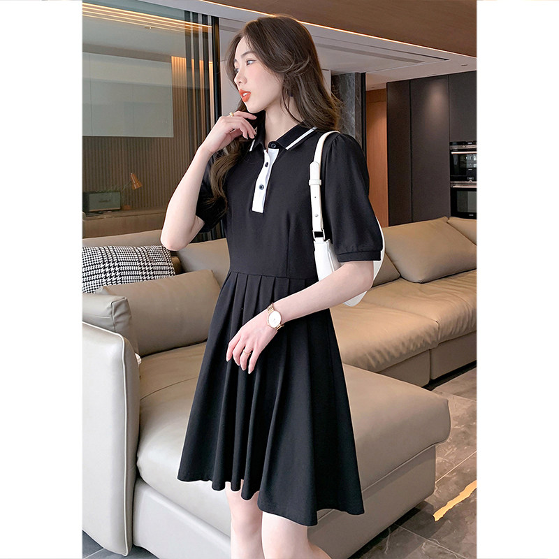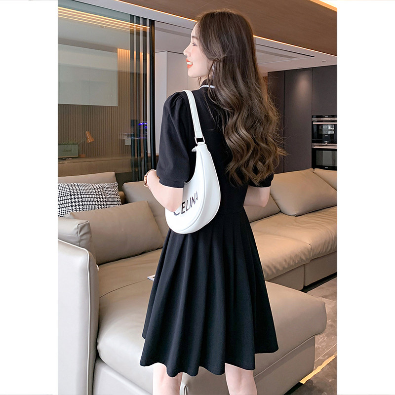 唐狮黑色连衣裙女士学院风Polo裙运动风显瘦裙子女装夏季百