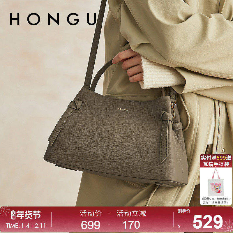红谷包包女式新款真皮单肩手提包小众设计大容量斜挎手拎包女士包