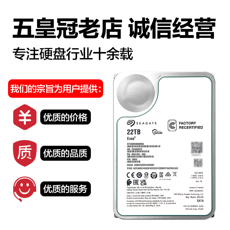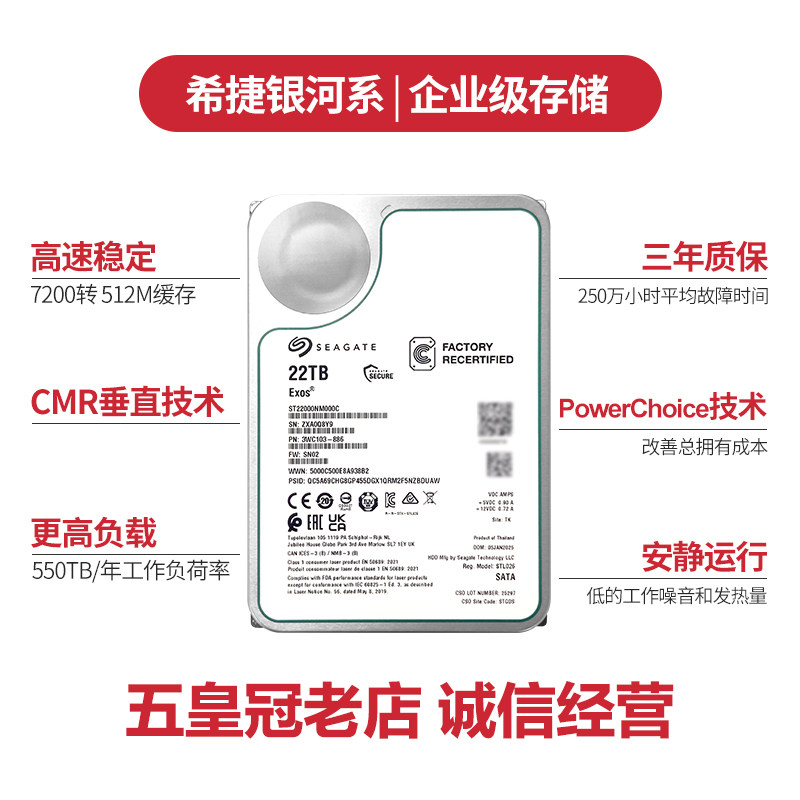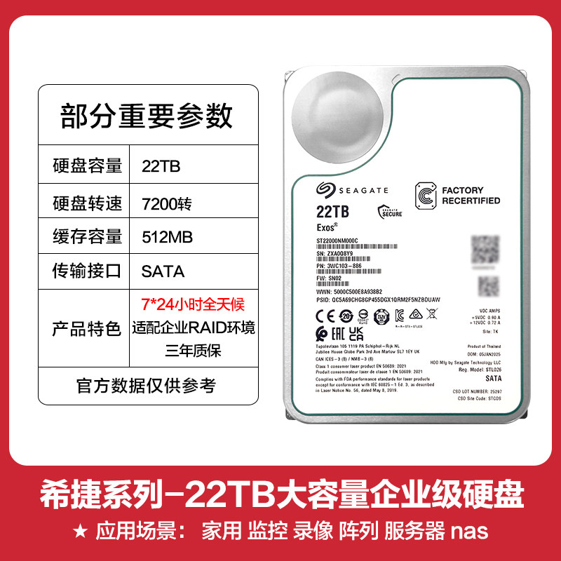 希捷银河企业级ST22000NM000C氦气盘22TB机械硬盘服务器存储监控