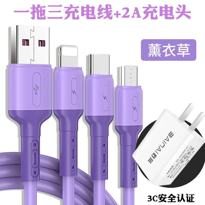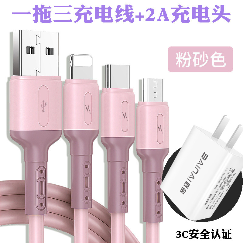 一拖三手机充电器插头数据线安卓typc华为OPPO小米vivo通用2A快充