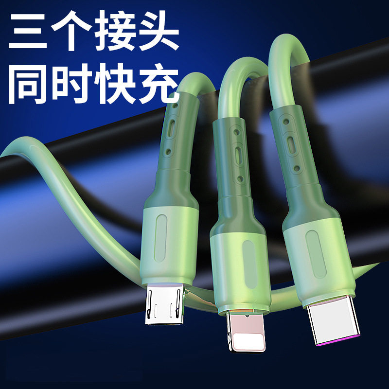 适用苹果小米vivo华为oppo三合一套装数据线充电线器一拖三Typec安卓多头多功能三头手机车载