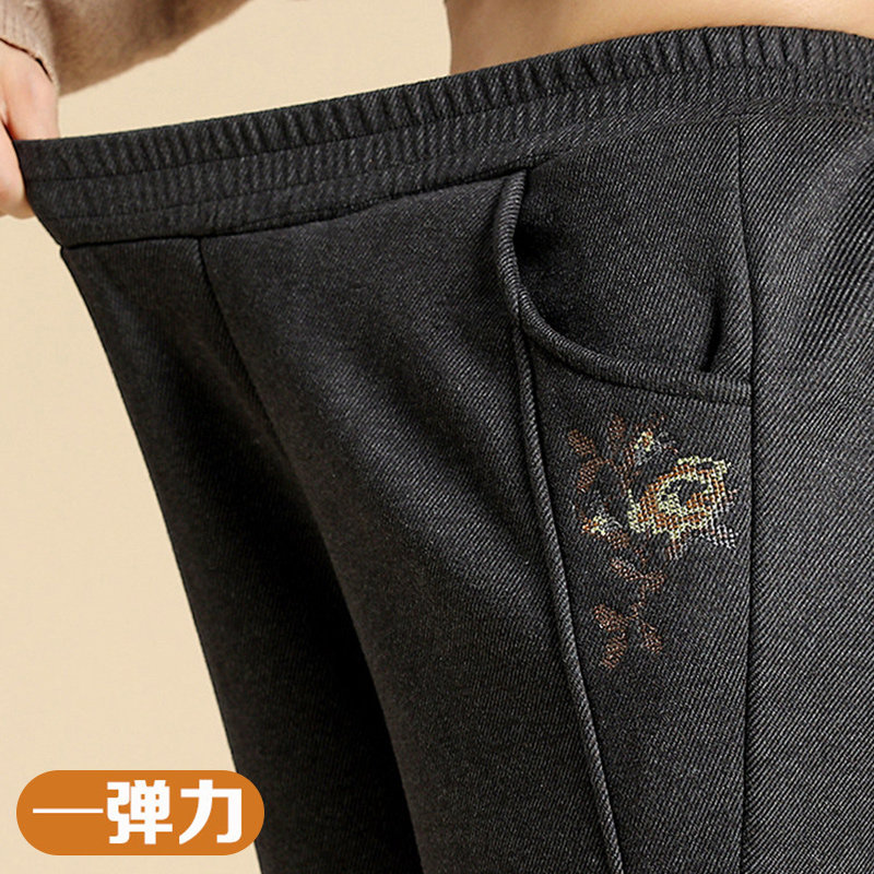 妈妈裤子春秋款松紧高腰弹力中老年女裤宽松大码直筒奶奶加绒长裤