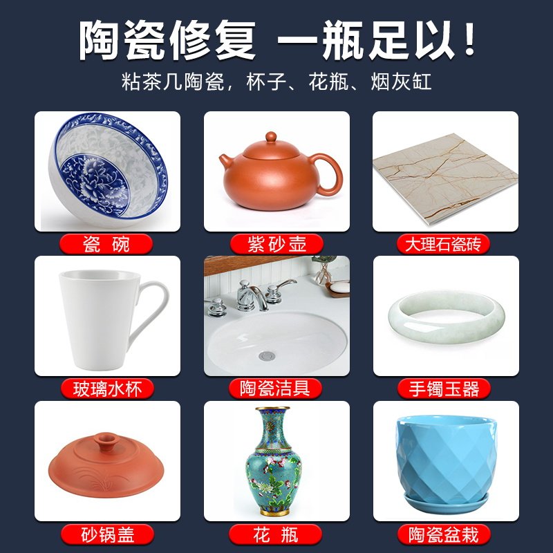 固特灵食品级粘陶瓷胶强力万能粘瓷器无痕修补修复石材大理石台盆裂缝高粘度工艺品紫砂壶茶杯花盆专用胶水