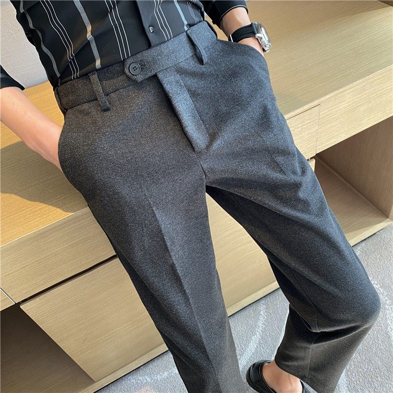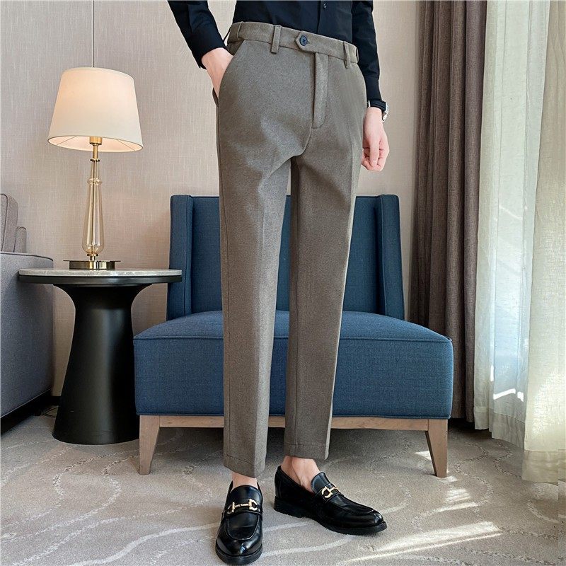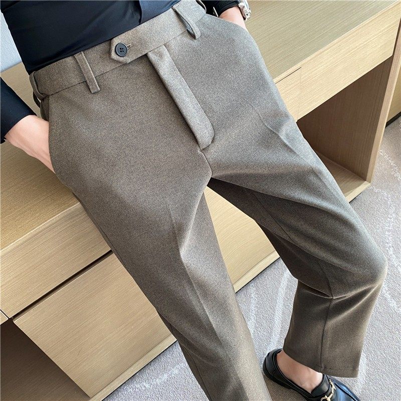 秋冬2026毛呢西裤男冬季休闲裤高级感修身商务小脚裤呢子西装长裤
