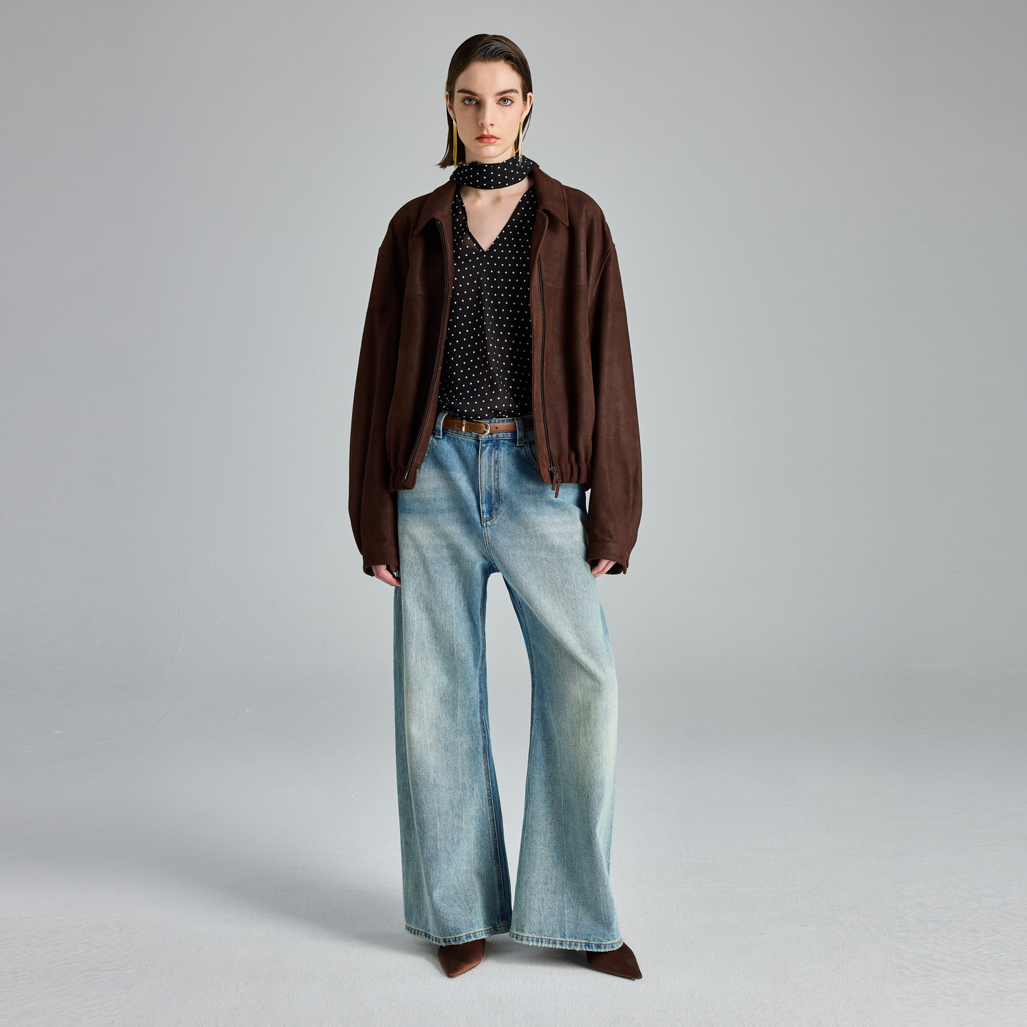 森柔|森马牛仔衬衫女春中长款oversize落肩长袖衣服格纹街头衬衣