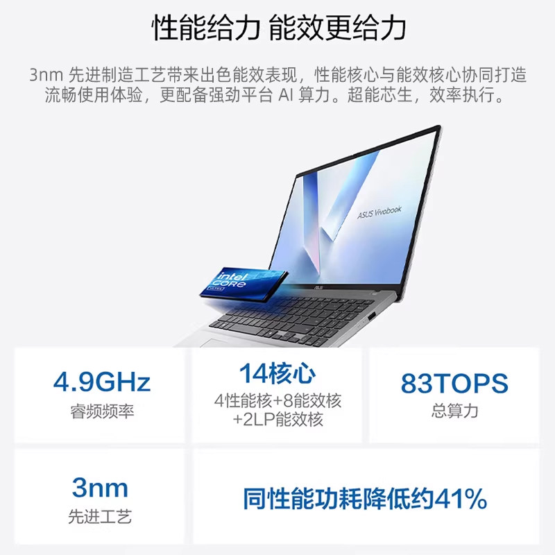 【国补15%】华硕无畏16 二代酷睿Ultra5-225H 16英寸 2.5K亮彩护眼屏高性能AI轻薄笔记本电脑便携学生办公
