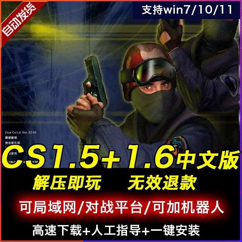 反恐精英CS1.5CS1.6零点行动中文版单机游戏安装包机器人局域网